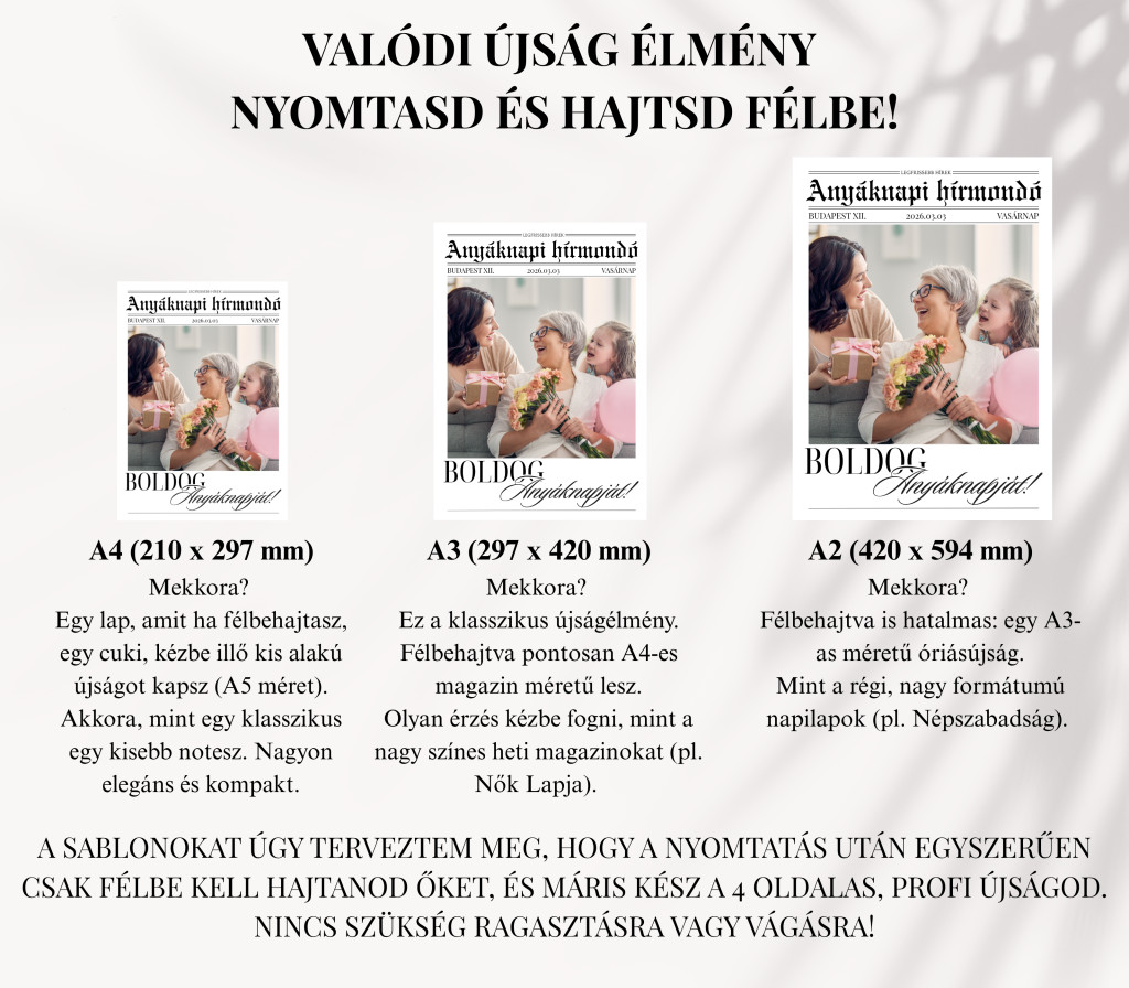 Az Anyák Napi "Hála" különkiadásunkat azoknak alkottuk meg, akik egy igazán mély és maradandó ajándékkal szeretnék kifejezni a szeretetüket. Ez nem egy egyszerű újság, hanem egy 4 oldalas levél az Édesanyádnak, a Nagymamádnak vagy annak az asszonynak, aki mindig melletted állt.