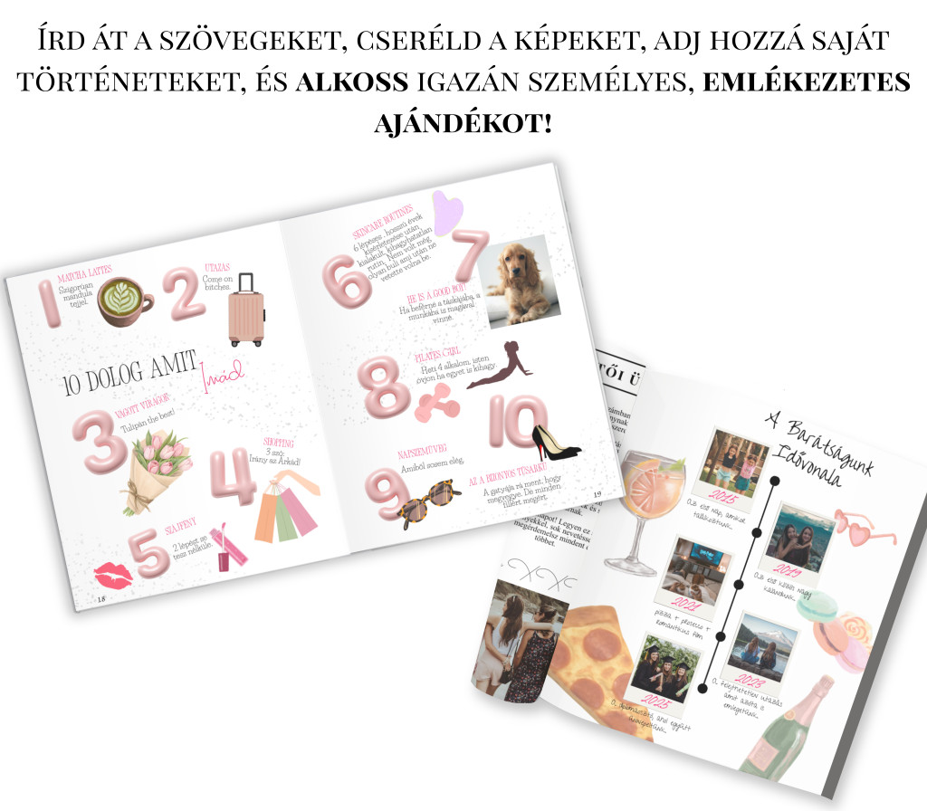 A közös emlékeitek többet érdemelnek, mint hogy a telefonod mélyén, elfeledett mappákban pihenjenek. Ezt a sablont azért hoztam létre, hogy segítsen neked egy valódi, esztétikus magazinba rendezni az évek legviccesebb, legmeghatóbb és legőrültebb pillanatait. Ez nem csak egy ajándék, hanem egy közös időkapszula a barátságotokról.